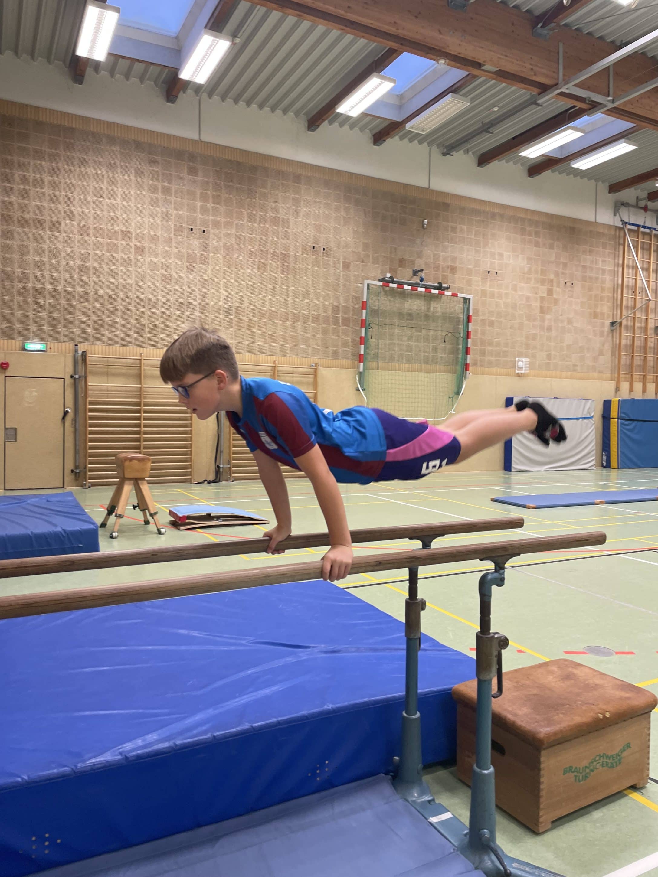 Das befanden zumindest 25 Fünft- und Sechstklässler der WWS sowie 21 Schülerinnen und Schüler der 3c aus der Gustav-Peters-Schule. Der WPU „Sportevents“ der WWS hatte Stationen zum Turnen am Reck, am Boden, am Sprung, am Barren und an der Bank vorbereitet. Damit auch Nichtturner reichlich Punkte sammeln konnten, durfte zusätzlich gesprintet, gesprungen und am Tau hochgeklettert werden. Um spielerisch den Kontakt zwischen den zwei Schulen herzustellen, sprachen sich Lea Kienzle (GPS) und Kirsten Lux (WWS) ab und machten den kleinen Wettkampf auch für die Grundschüler*innen möglich. Zu Weihnachtshits konnte jede und jeder zeigen, was in einem steckt. „Die können das ja besser als wir!“, stellte Varvara am Reck fest. Am Tau kletterte Merle ohne Mühe bis nach oben, was ihr schlussendlich auch die nötigen Punkte für den Gesamtsieg vor Henrietta und Madita einbrachte. Am Barren zeigte Matti eine fehlerfreie Übung und sicherte sich so hinter Liam und Leon einen Platz auf dem Treppchen. Auch die Grundschüler*innen ließen die Kampfrichter aus den Klassen neun und zehn staunen. Lotta sprang mit Leichtigkeit über den Bock und errang knapp vor Toni, die eine exzellente Standwaage auf der Bank präsentierte, den ersten Platz in der Wertung der Drittklässlerinnen. Ebba erkämpfte sich Platz drei. Bei den Jungen erreichte Jonte Platz eins vor Muhammed und Husein. Am Ende der Veranstaltung hatte jede Wettkämpferin und jeder Wettkämpfer eine Urkunde und einen Schokoweihnachtsmann bzw.- lollie in der Hand und konnte zufrieden die Halle verlassen. Als Fazit der Veranstaltung fassten Lea Kienzle und Kirsten Lux zusammen: „Diese gemeinsamen Aktionen sollte man viel häufiger durchführen. Die Kleinen haben Spaß und die Großen erhalten durch die Übernahme von Verantwortung eine ganz andere Möglichkeit sich darzustellen, als das im Sitzunterricht der Fall ist!“