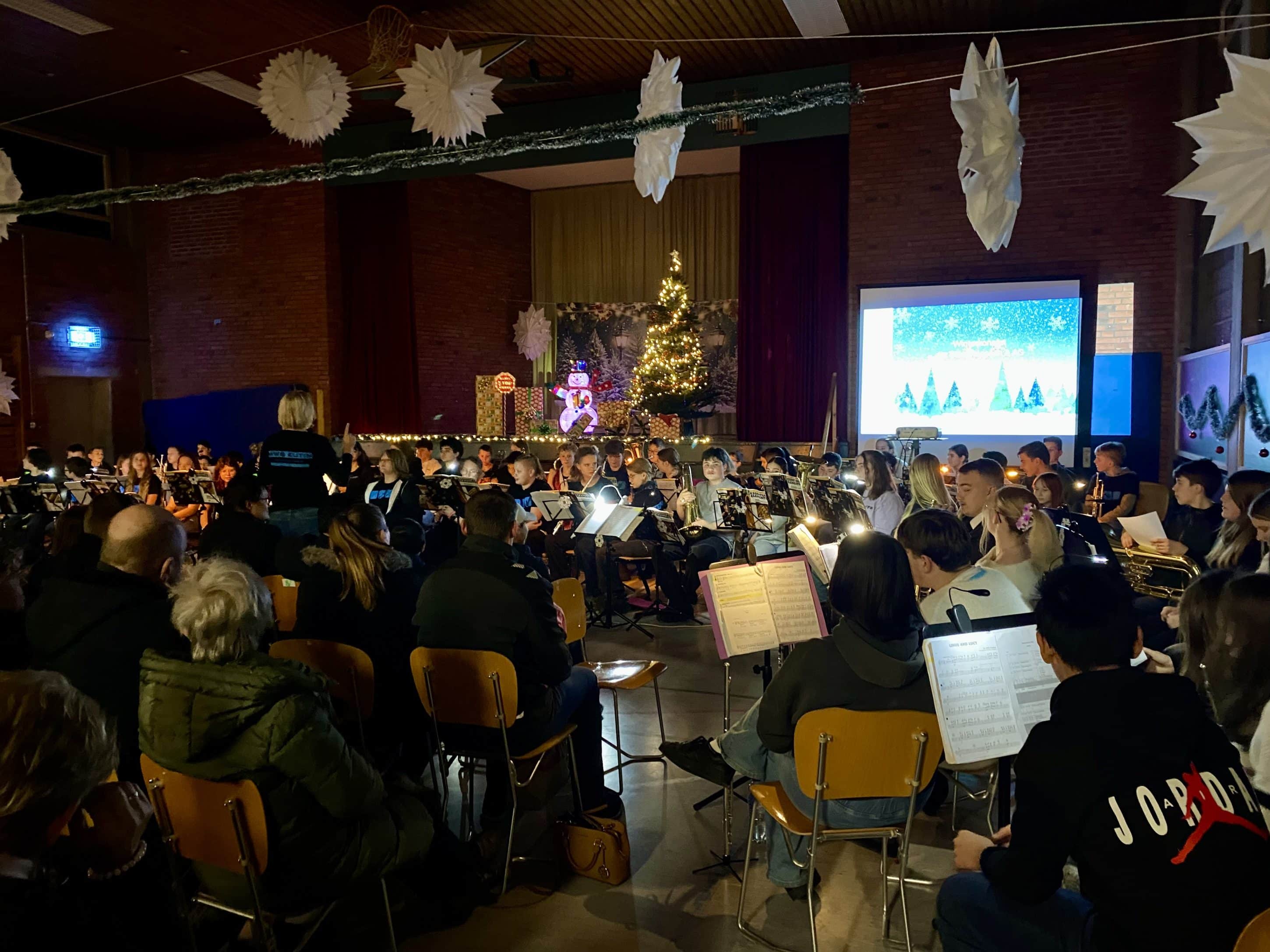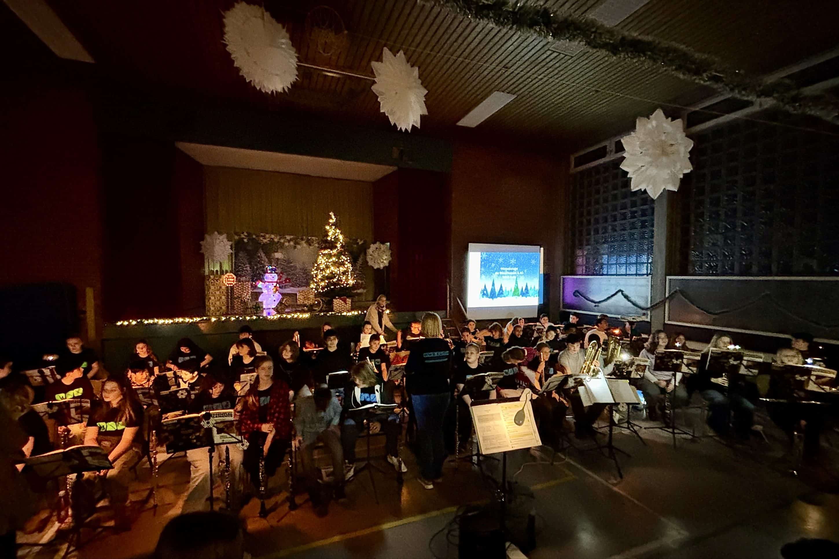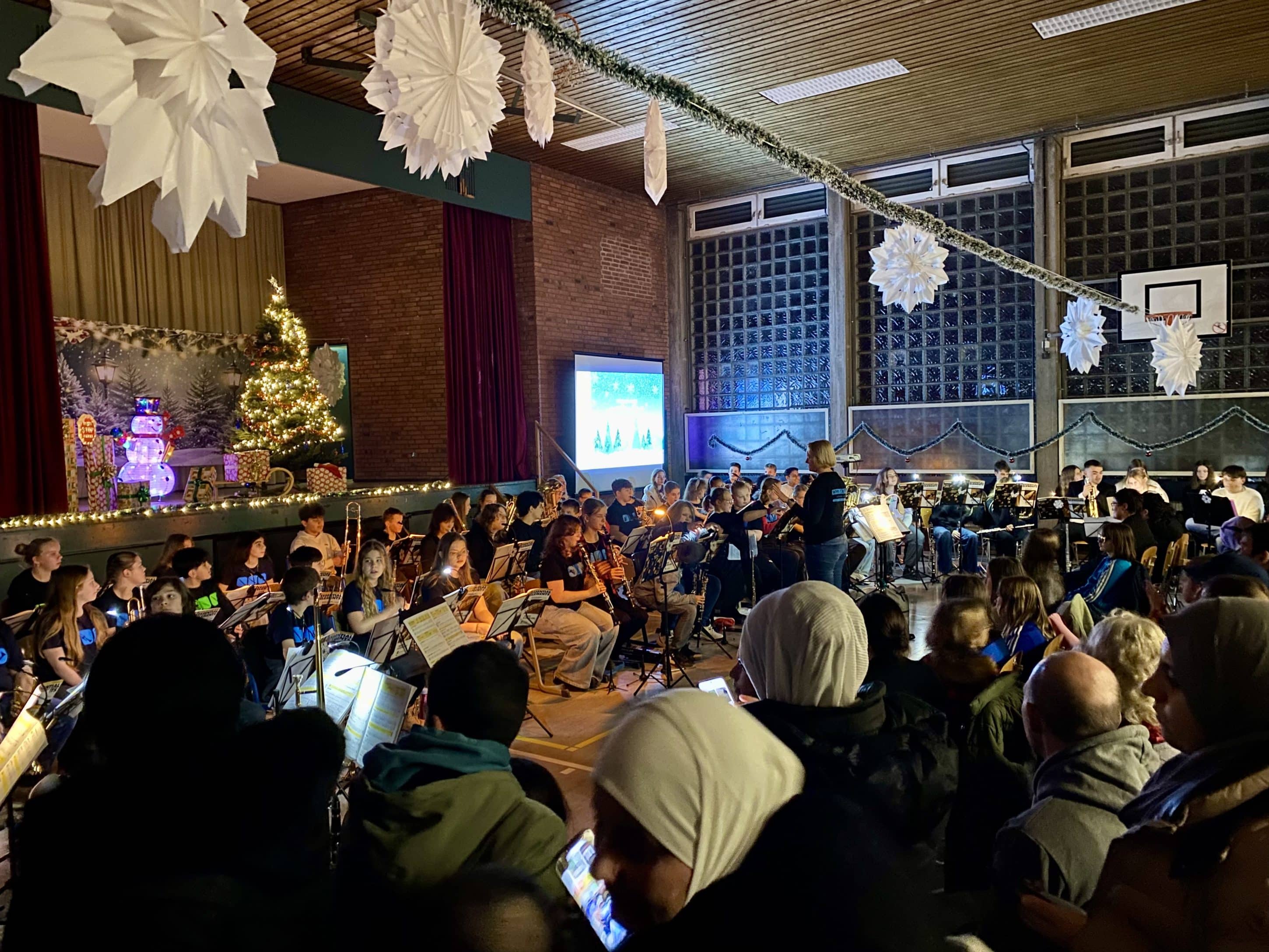 Festliche Klänge in der Turnhalle: Bläserklassen der WWS begeistern mit Weihnachtskonzert