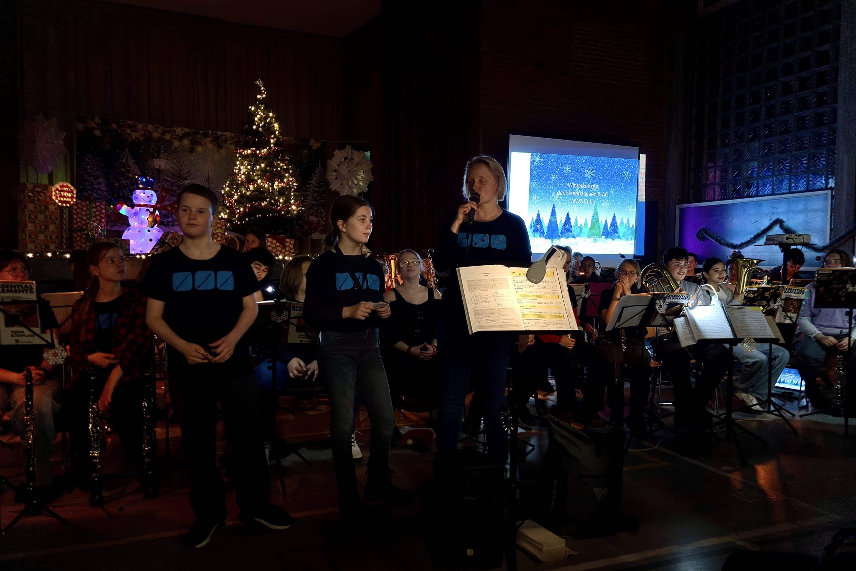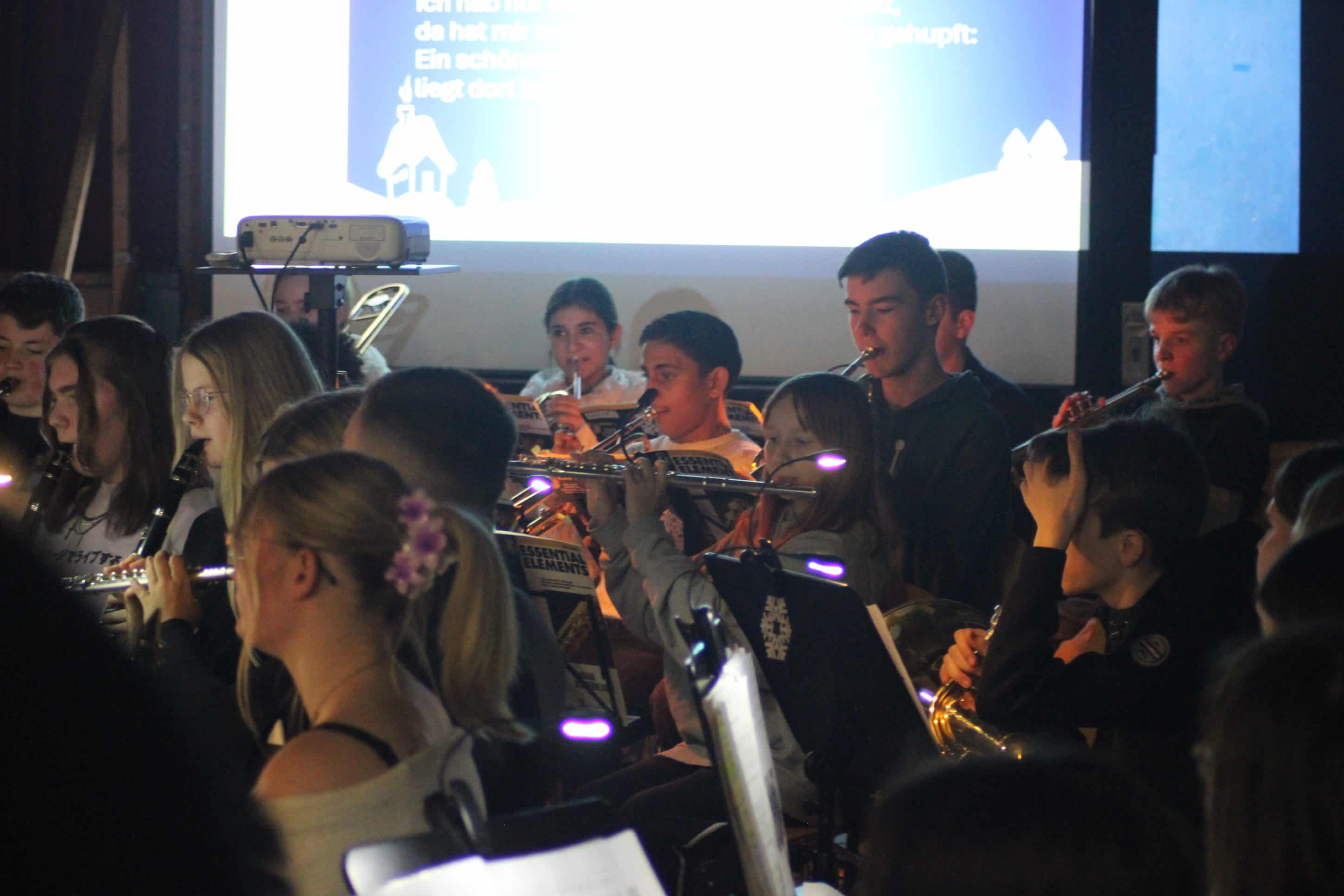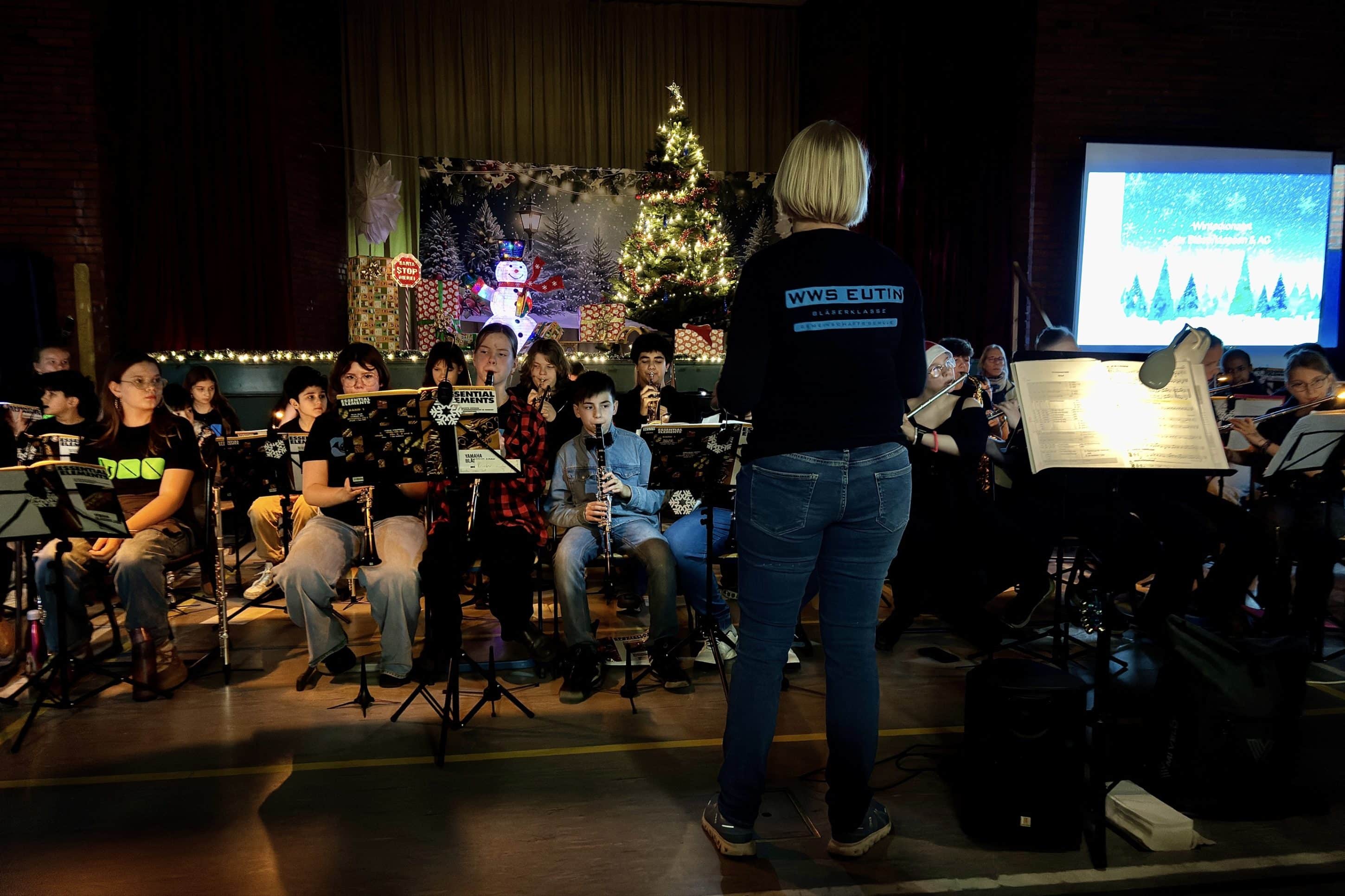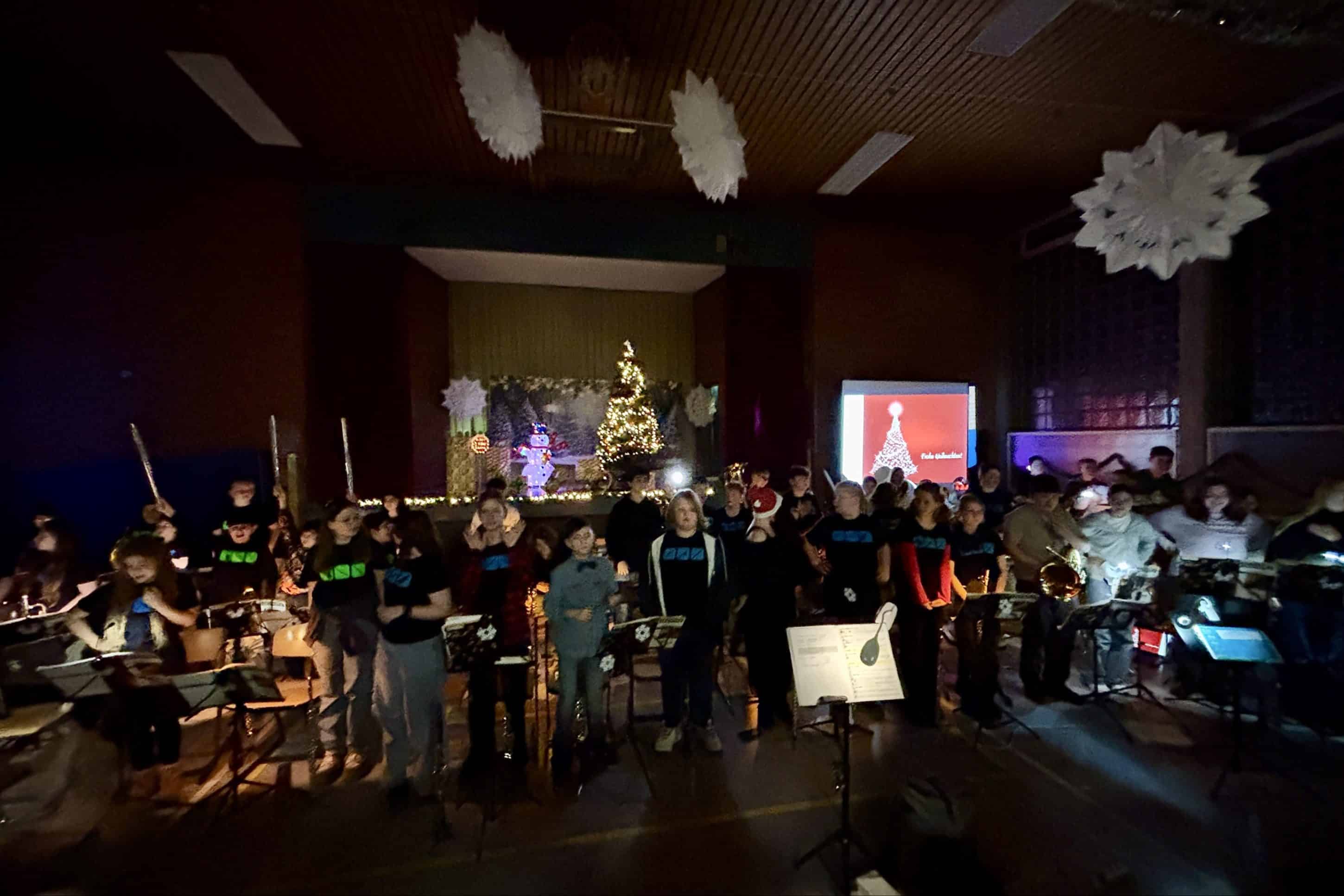 Festliche Klänge in der Turnhalle: Bläserklassen der WWS begeistern mit Weihnachtskonzert