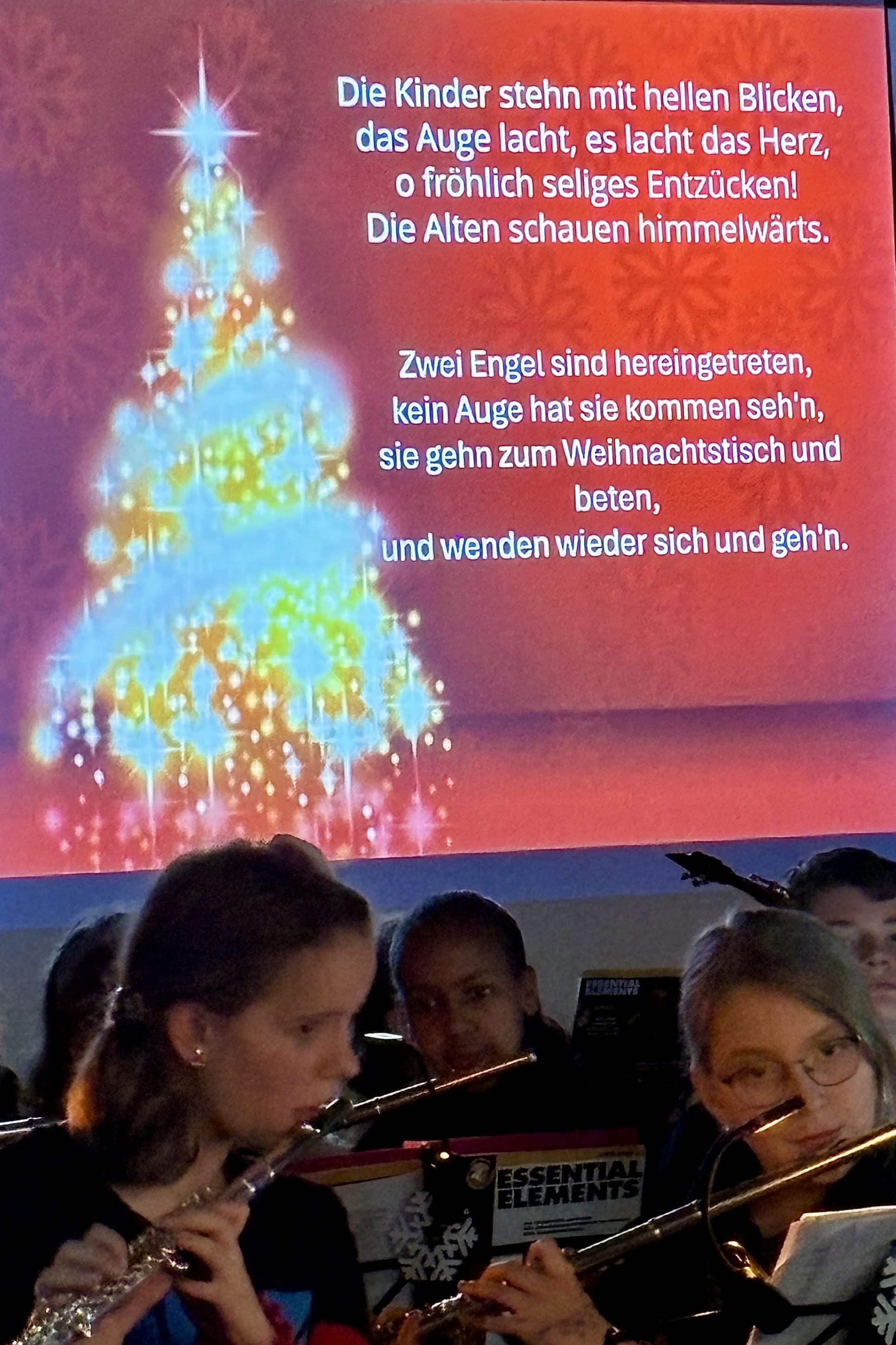 Im Mittelpunkt standen traditionelle wie moderne Weihnachtslieder, davon einige zum Mitsingen. Auf einer Leinwand wurden die Liedtexte eingeblendet, sodass sich die Zuhörenden anschließen konnten. So wurde das Auditorium schnell zu einem vielstimmigen Chor – ein musikalisches Gemeinschaftserlebnis, das Schülerinnen, Schüler und Gäste gleichermaßen begeisterte.
